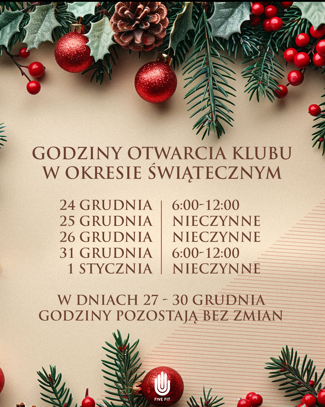 Five Fit to coś więcej niż klub fitness — to nowoczesna przestrzeń, w której pasja do aktywności spotyka się z profesjonalizmem i wyjątkową atmosferą. To miejsce stworzone z myślą o tych, którzy cenią sobie zdrowie, dobre samopoczucie i pozytywne relacje.